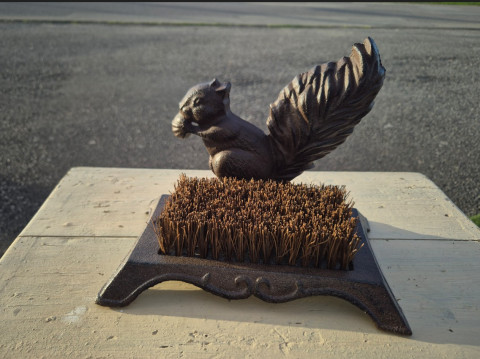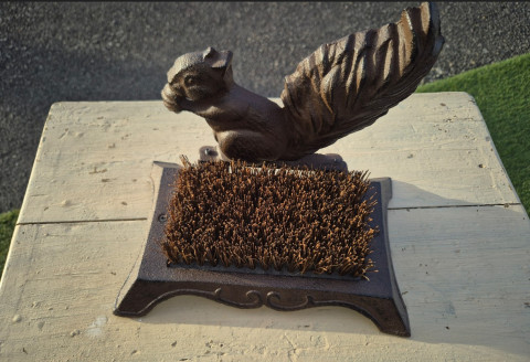 Très belle brosse fonte écureuil vintage, elle fera fureur dans votre entrée..