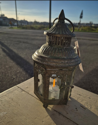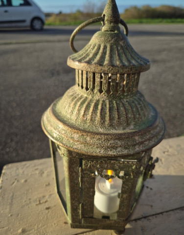 Lanterne de jardin vintage en métal vert de gris déco campagne