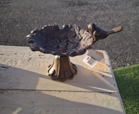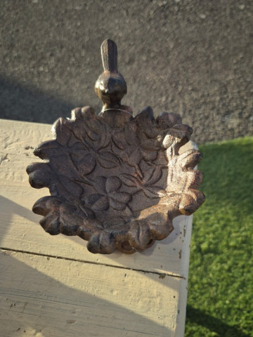 Superbe mangeoire à poser en fonte fleurie vintage, elle pourra se poser sur un petit balcon, une petite table..