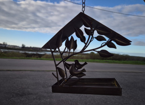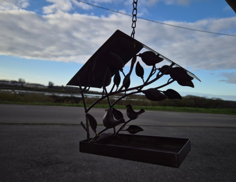 Superbe mangeoire fleurie laquée noire, très légère, elle séduira les petits oiseaux qui y trouveront refuge..