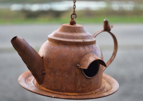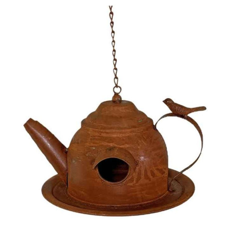 Mangeoire à suspendre théière en métal rouille déco campagne