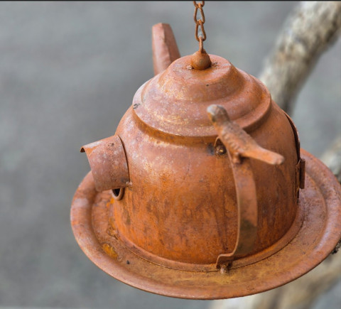 Magnifique théière vintage en métal rouillé qui fera fureur dans votre jardin.