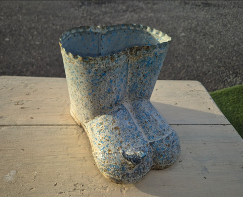 Magnifique vase en forme de bottes en métal patiné, il trouvera sa place sur une console, rempli de fleurs,