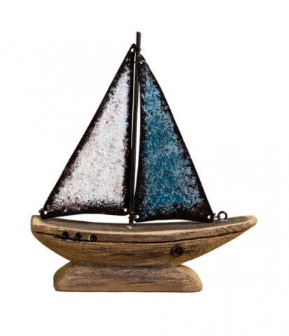 Petit bateau voile en fer Bleu déco marine et vintage