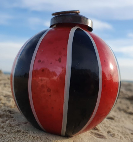 Très belle Boule de Noel Rouge et Noire, sa forme ballon en séduira plus d'un..
